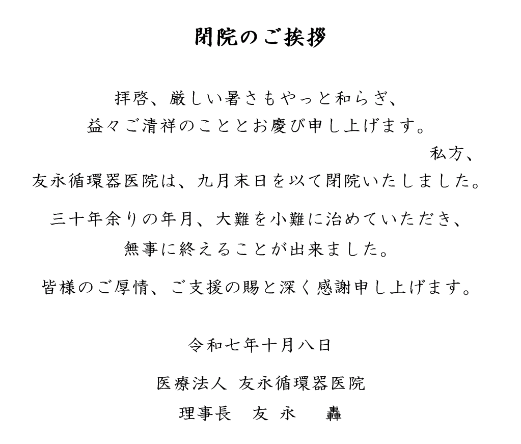 友永循環器医院 閉 院